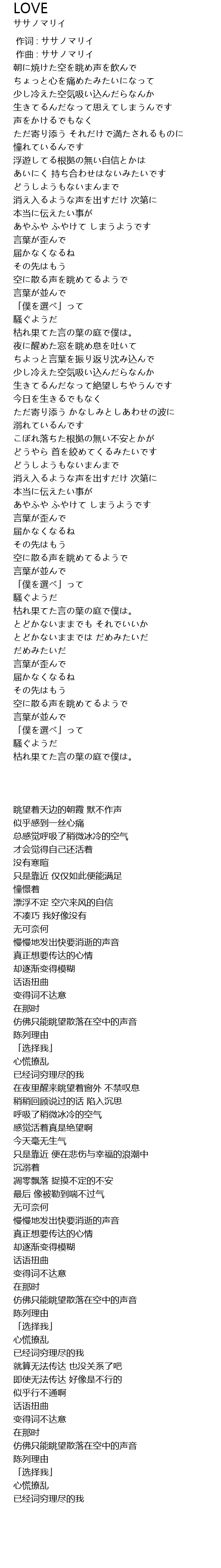 | [00:00.000] | 作词 : ササノマリイ |
