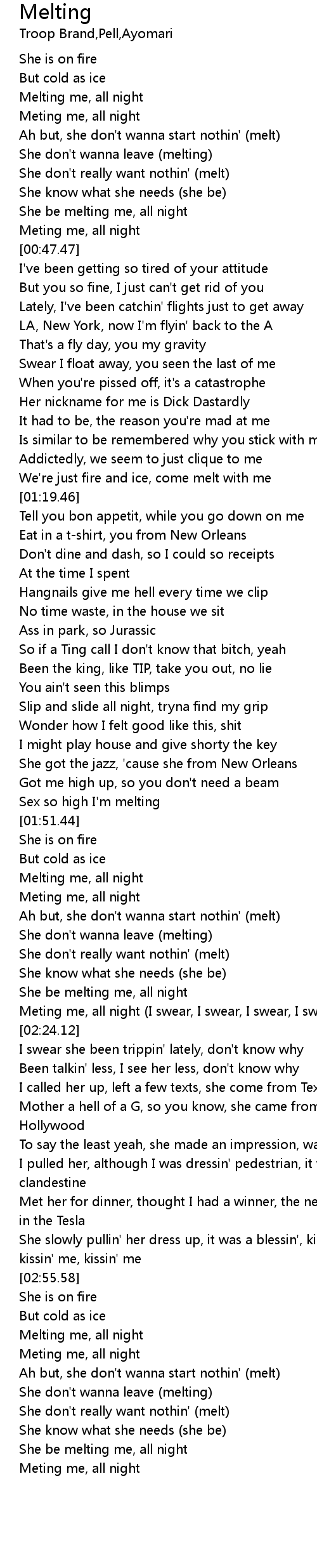 Melting me, all night |