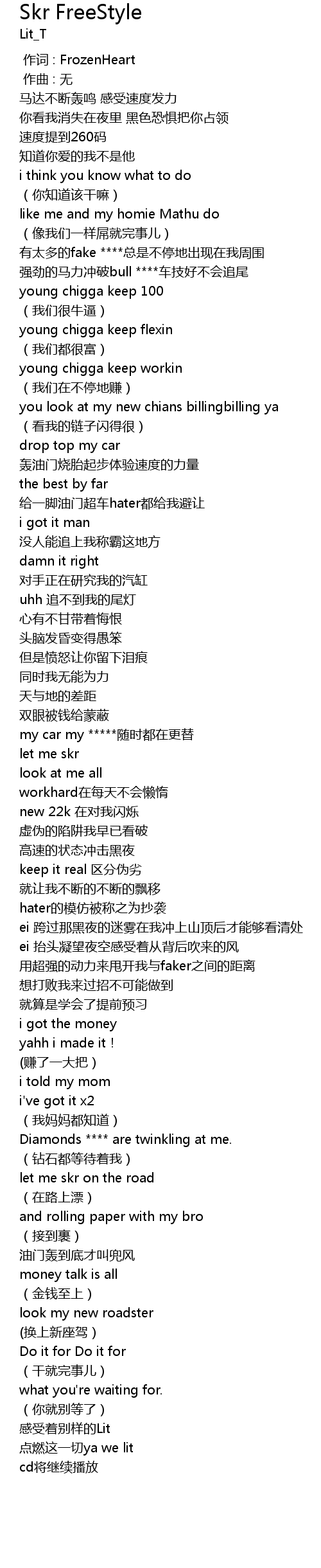 | [00:46.229] | 给一脚油门超车hater都给我避让 |