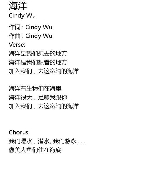 | hǎi yáng hěn dà, zú gòu wǒ gēn nǐ | |