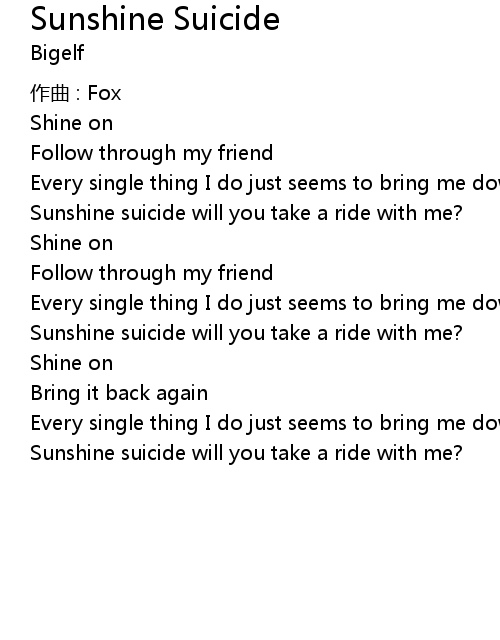 | Sunshine suicide will you take a ride with me? |