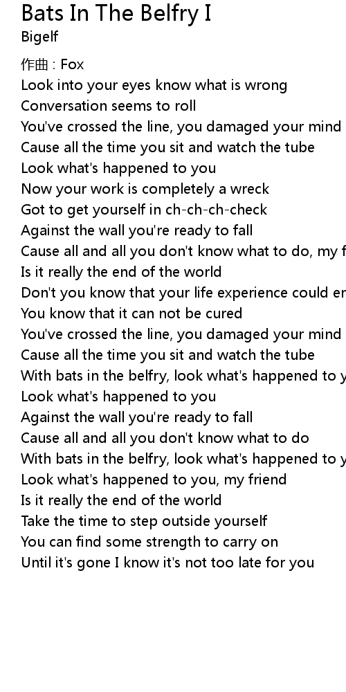 | With bats in the belfry, look what's happened to you | |