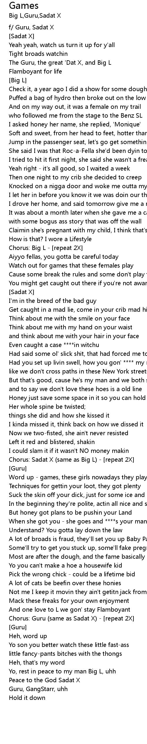 | Chorus: Sadat X (same as Big L) - [repeat 2X] | |