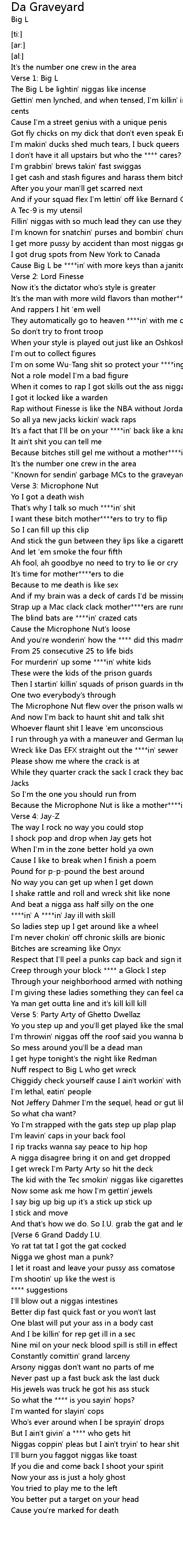 "Known for sendin' garbage MCs to the graveyard" |