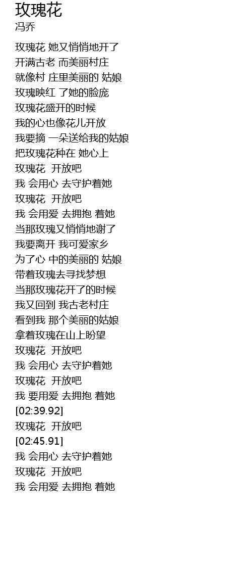 | [01:38.94] | 当那玫瑰又悄悄地谢了 |