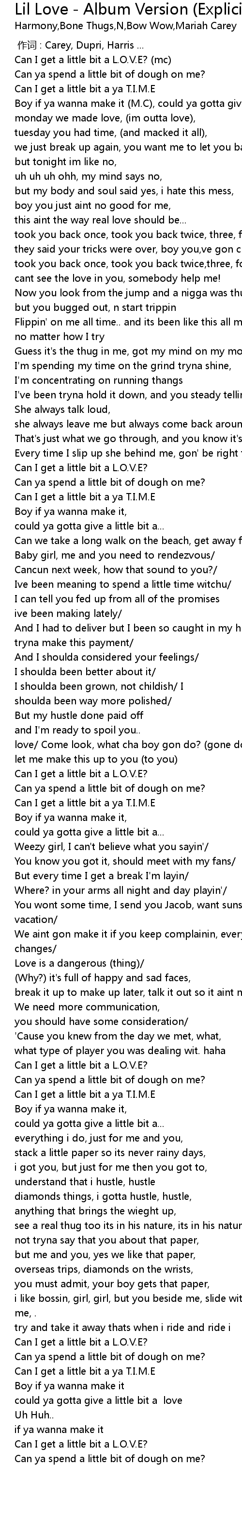 | [00:00.00] | zuò cí : Carey, Dupri, Harris ... |