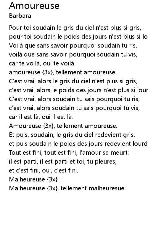 | Voilà que sans savoir pourquoi soudain tu ris, | |