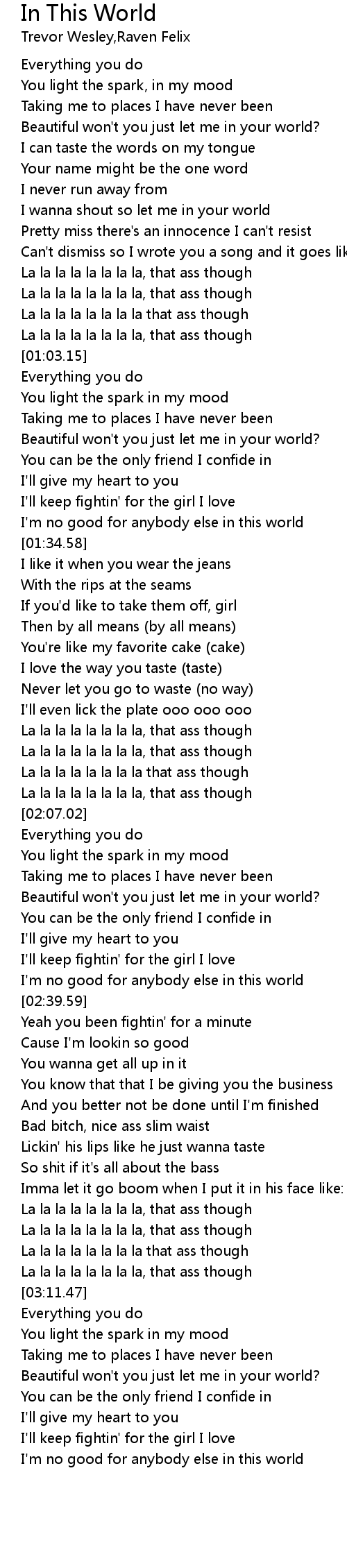 La la la la la la la la that ass though |