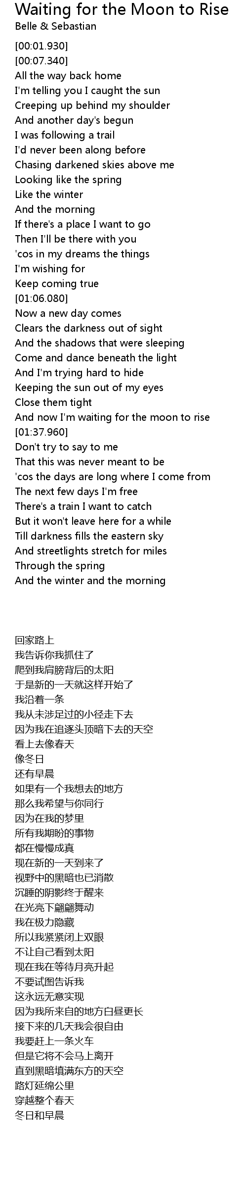 And now I'm waiting for the moon to rise |