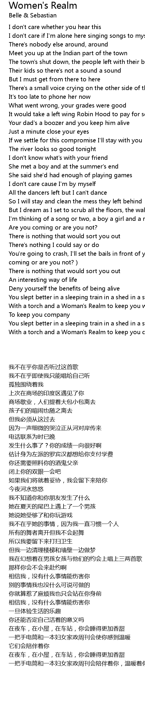 | Song | Women's Realm |