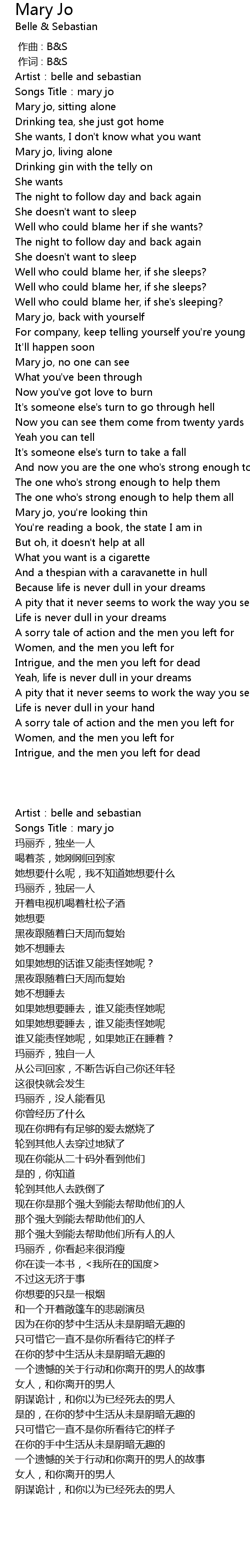 | [01:10.29] | Well who could blame her, if she sleeps? |