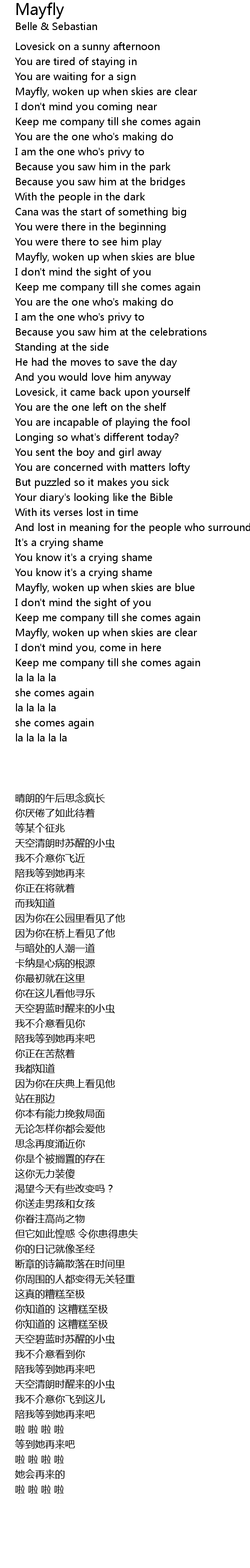 Keep me company till she comes again |