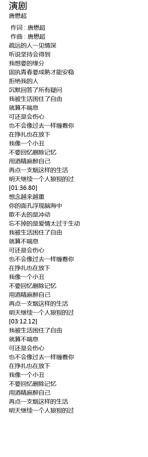 | [01:31.82] | 明天继续一个人狼狈的过 |