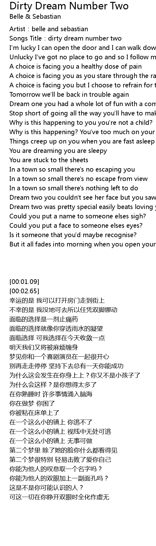 | [00:02.65] | Songs Title: dirty dream number two |