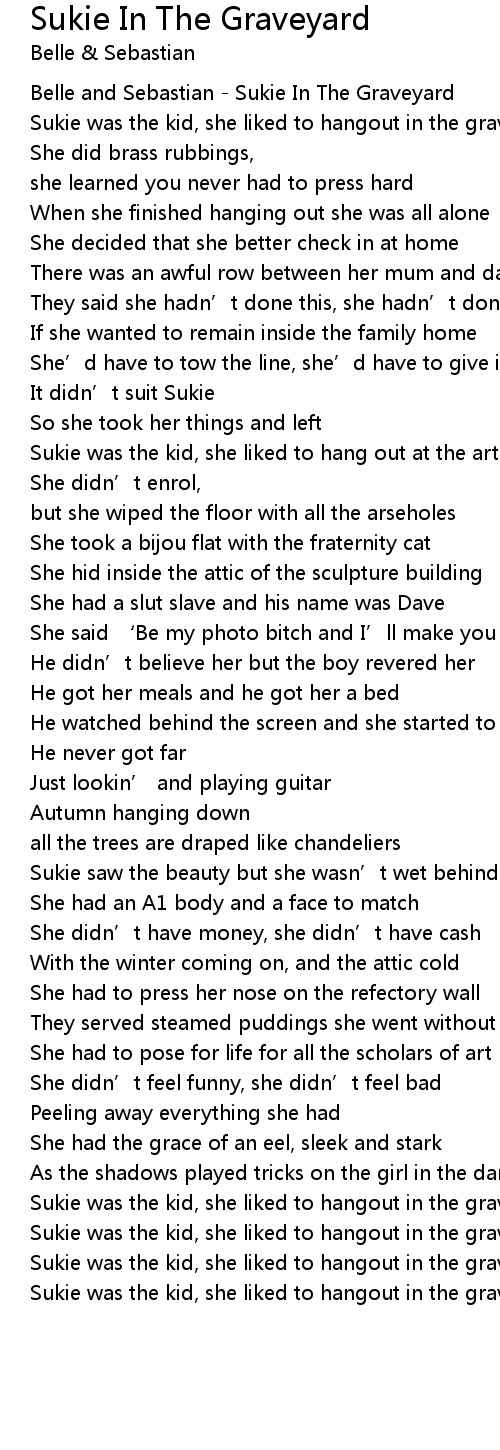 | [00:00.00] | Belle and Sebastian Sukie In The Graveyard |