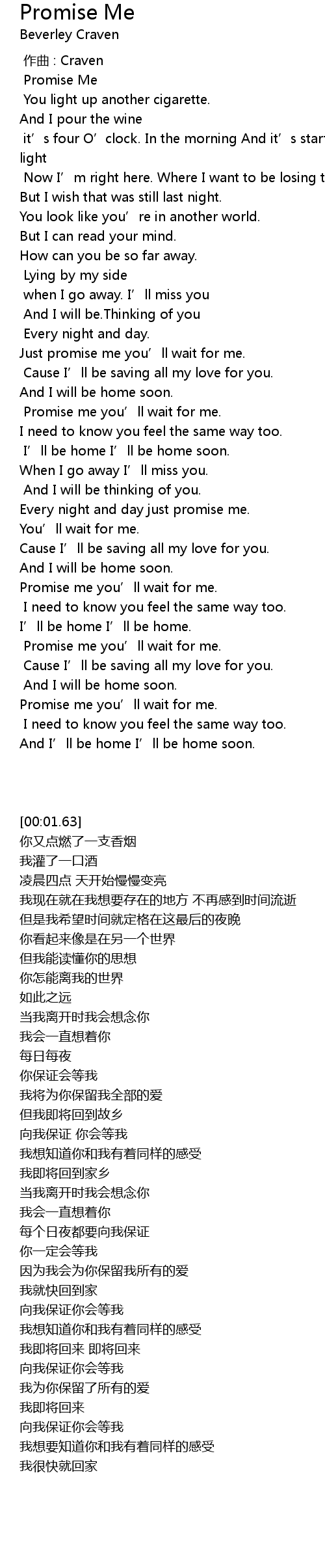 | [00:01.63] | Promise Me |