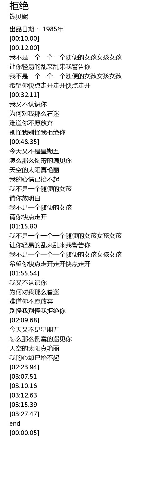 | [01:35.97] | 我不是一个一个一个随便的女孩女孩女孩 |