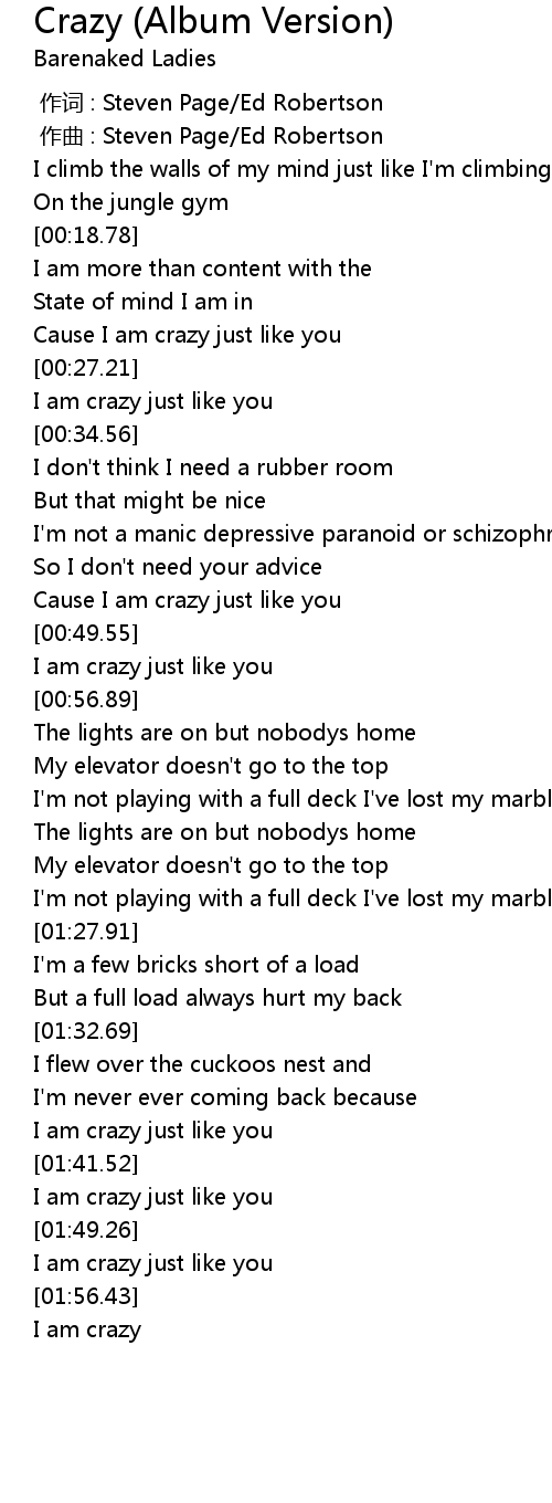 | [00:01.000] | 作曲 : Steven Page/Ed Robertson |