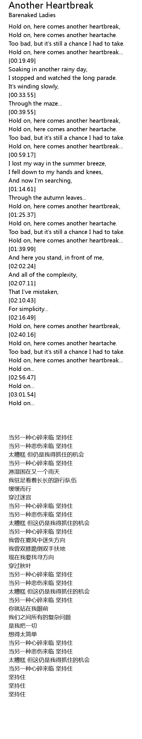 Hold on, here comes another heartbreak, |