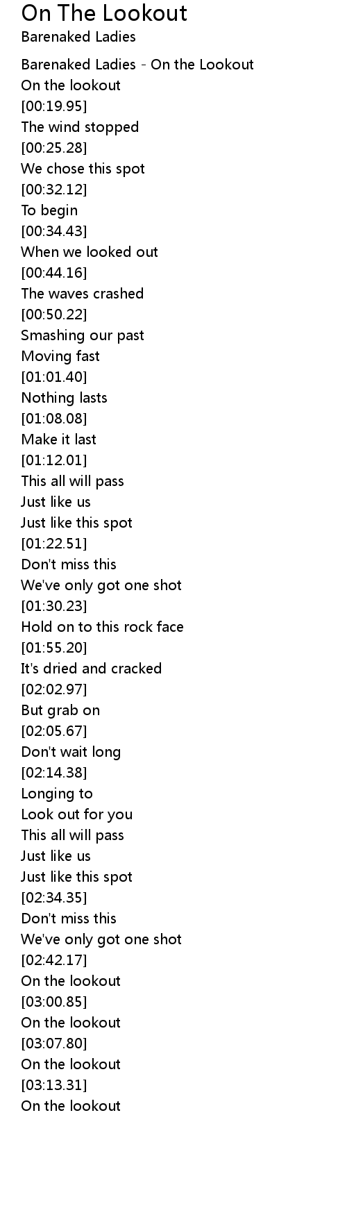 | [00:02.56] | Barenaked Ladies - On the Lookout |