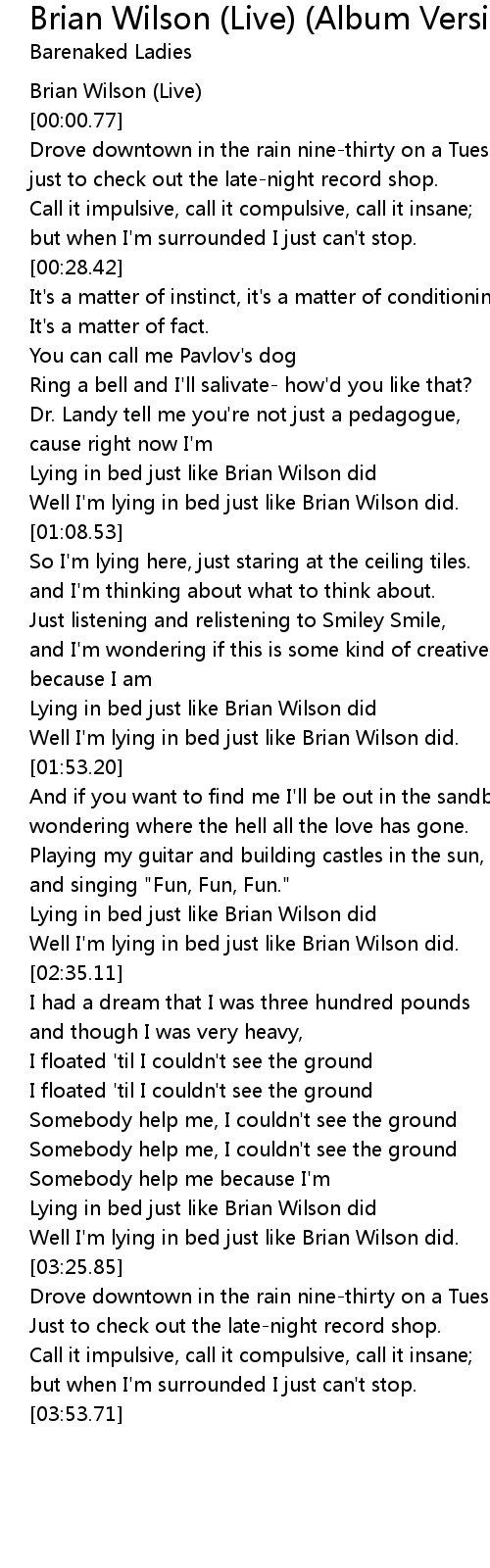 Well I'm lying in bed just like Brian Wilson did. |