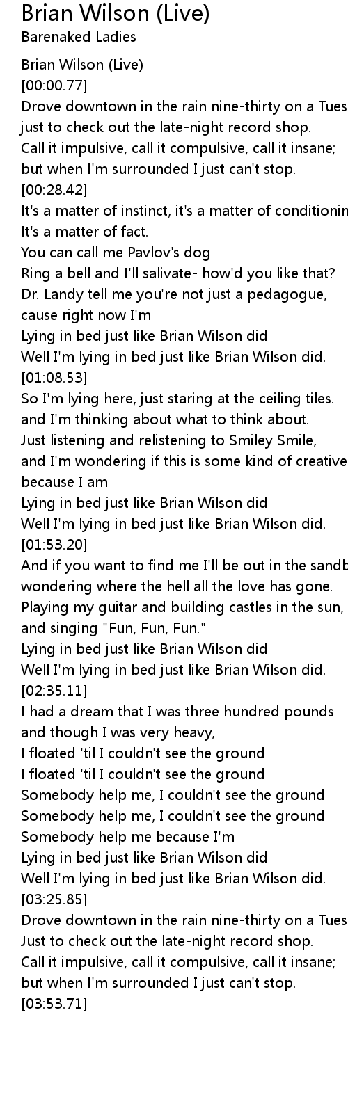 Well I'm lying in bed just like Brian Wilson did. |