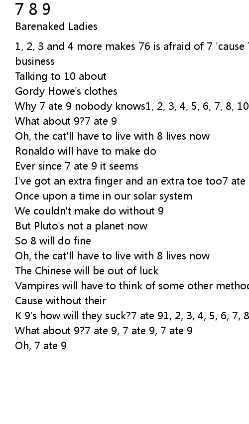 1, 2, 3 and 4 more makes 76 is afraid of 7 'cause 7 ate 99 was minding his business |