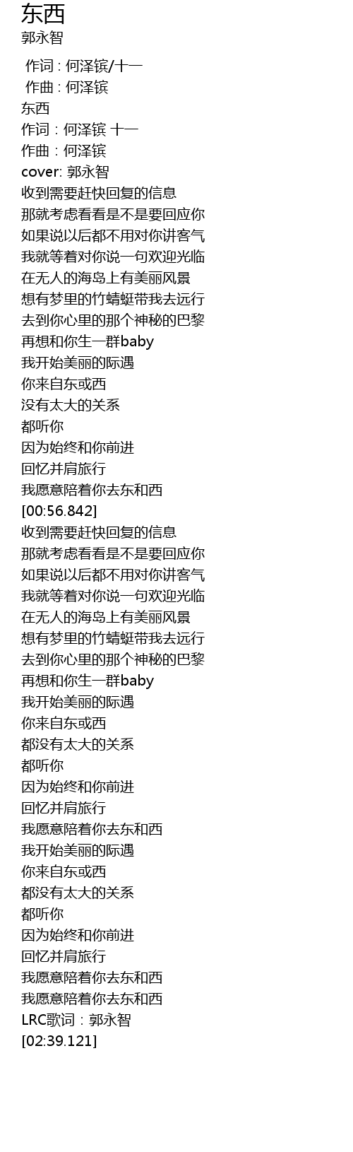 | [02:37.747] | LRC gē cí: guō yǒng zhì |