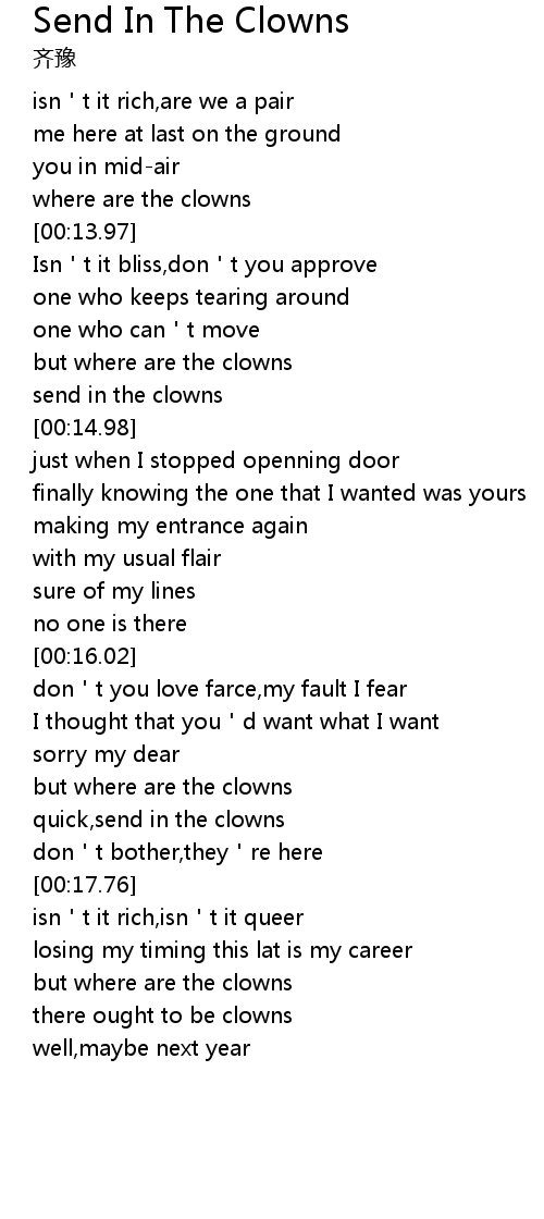 | [00:17.31] | quick,send in the clowns |