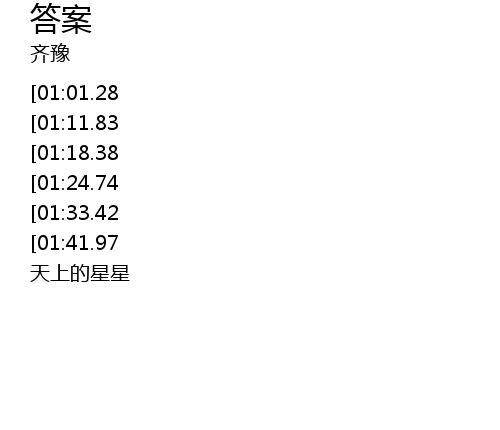 | [01:57.29][01:01.28][00:11.62] | 天上的星星 为何 |