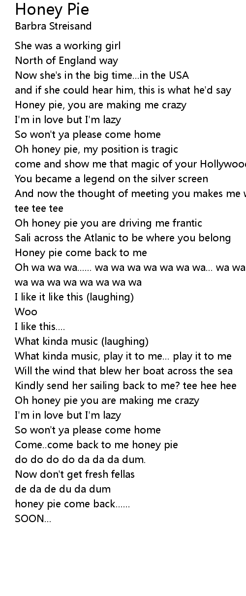 Honey pie, you are making me crazy |