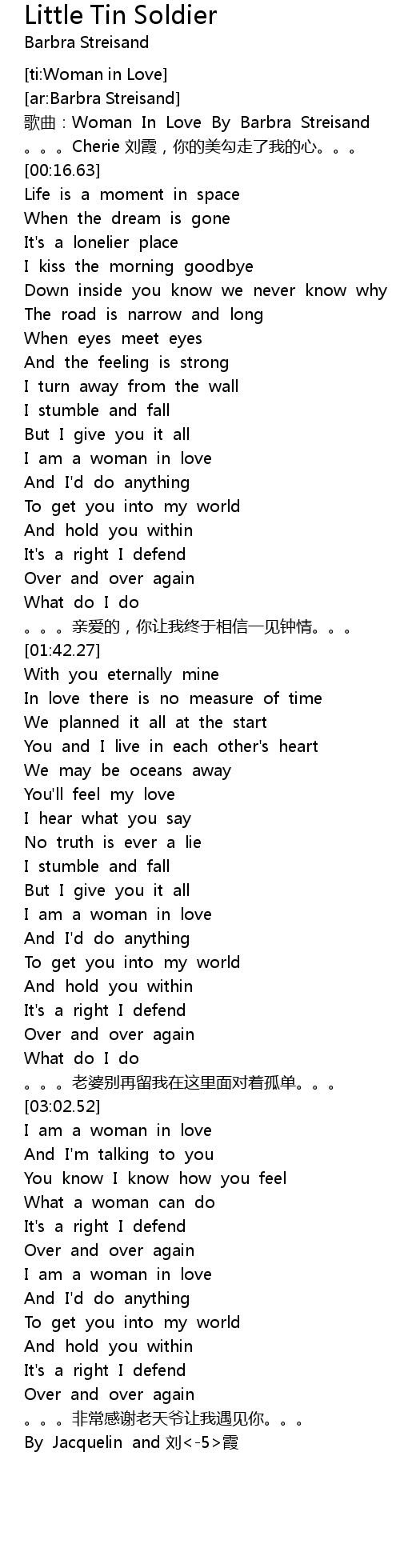 | [00:02.01] | gē qǔ: Woman In Love By Barbra Streisand |