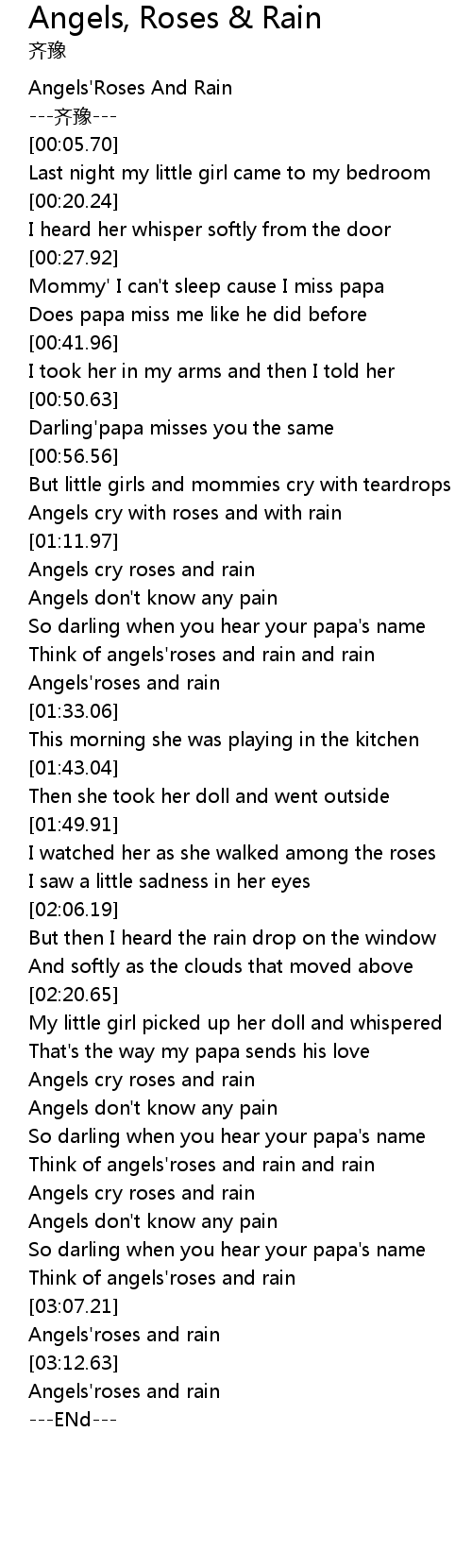 | [02:46.99] | Think of angels' roses and rain and rain |