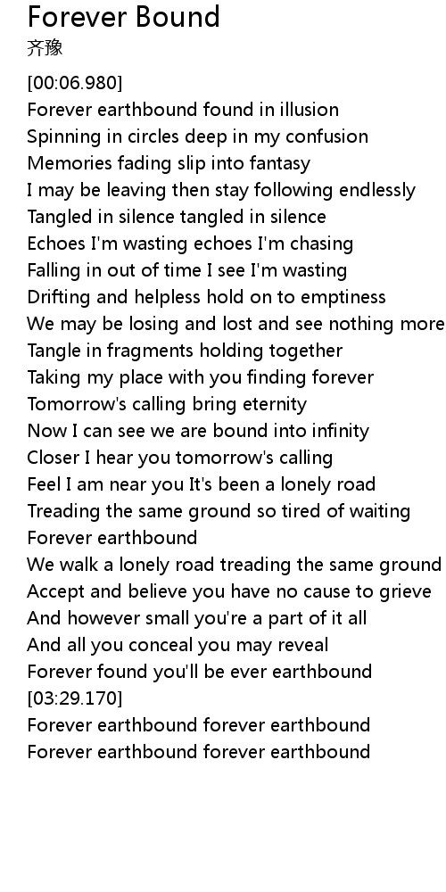| [03:19.860] | Forever found you'll be ever earthbound |
