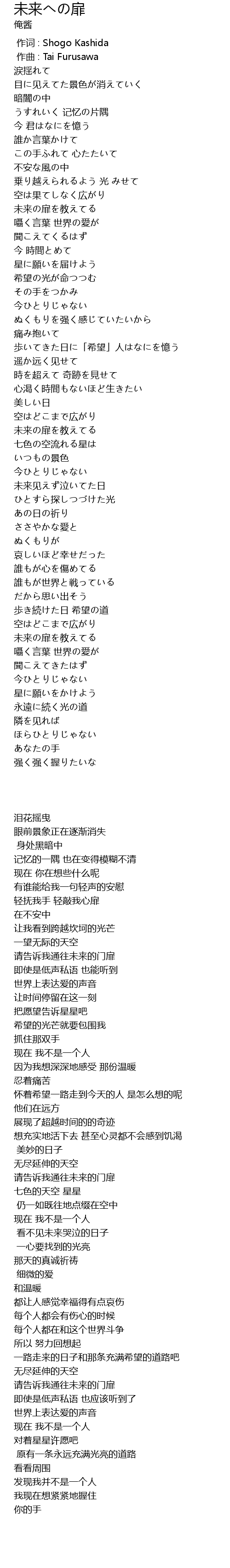 作词 : Shogo Kashida |