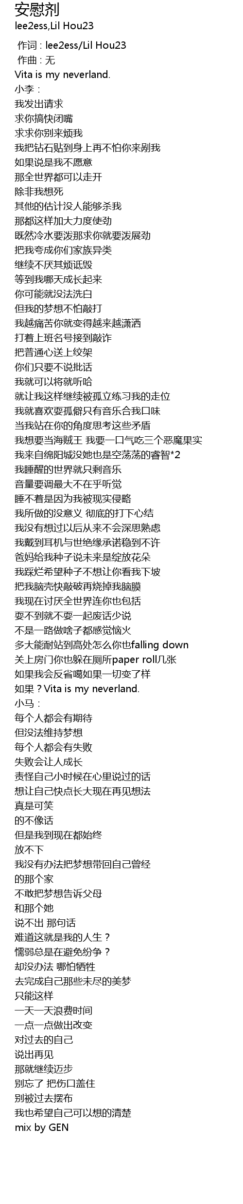 | [00:00.000] | 作词 : lee2ess/Lil Hou23 |