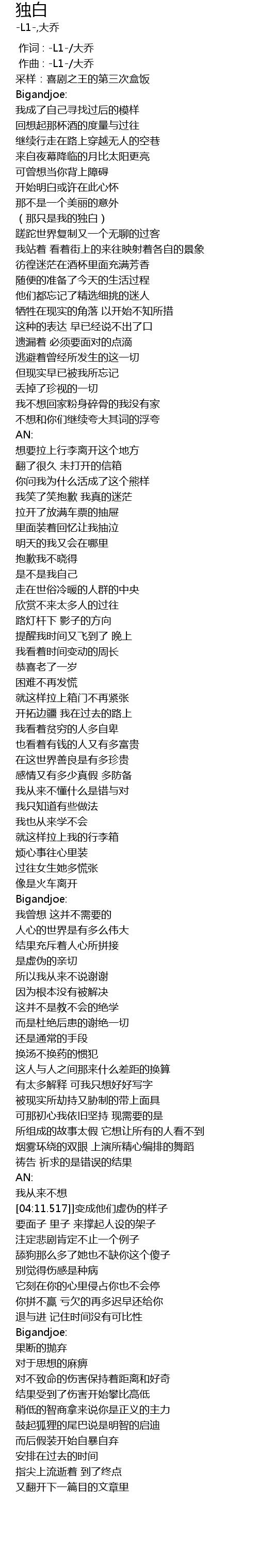 | [00:00.000] | 作词 : -L1-/大乔 |