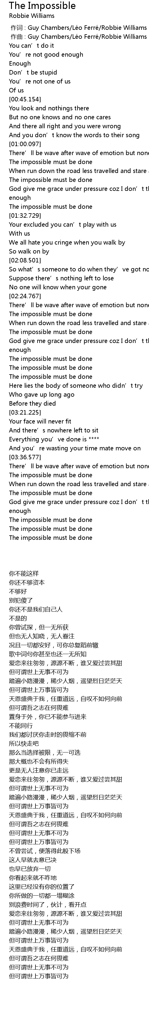 | [00:01.000] | 作曲 : Guy Chambers/Léo Ferré/Robbie Williams |