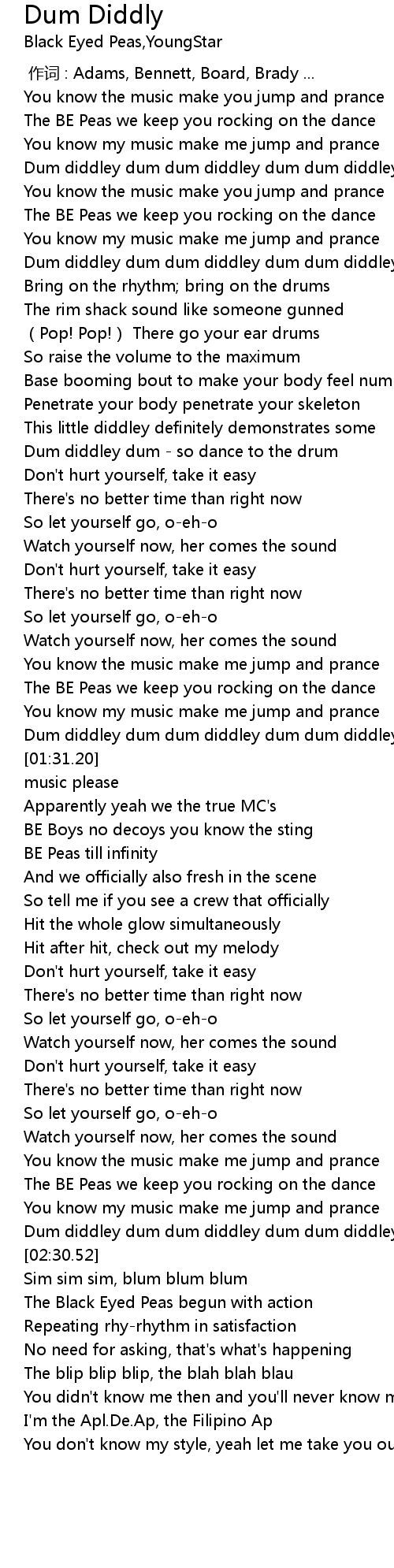| [02:27.35] | Dum diddley dum dum diddley dum dum diddley dum dum diddley diddley |