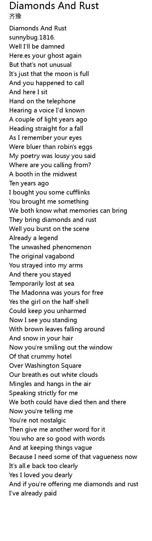 | [00:14.04] | Diamonds And Rust |