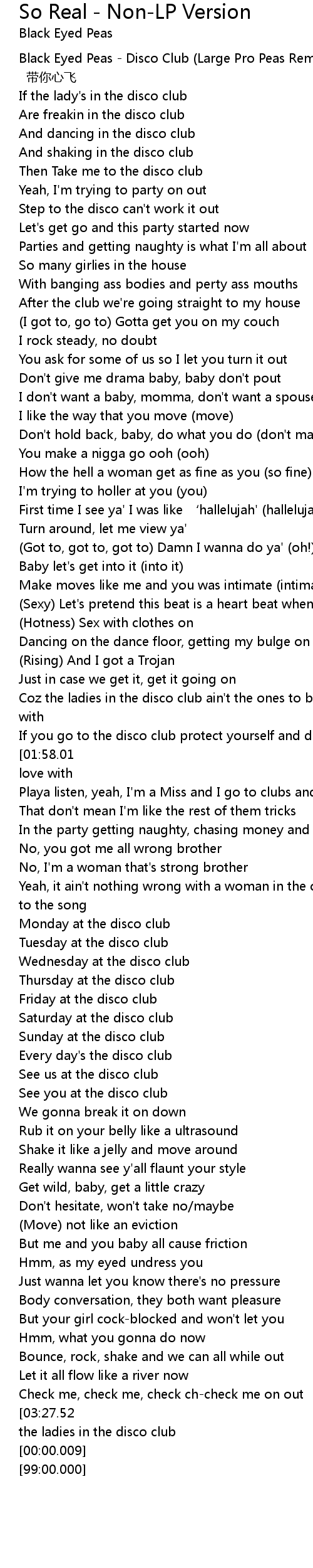 | [00:00.82] | Black Eyed Peas Disco Club Large Pro Peas Remix |