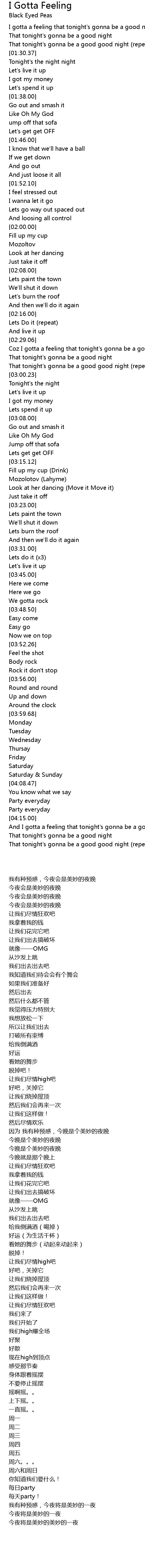 Coz I gotta a feeling that tonight's gonna be a good night |