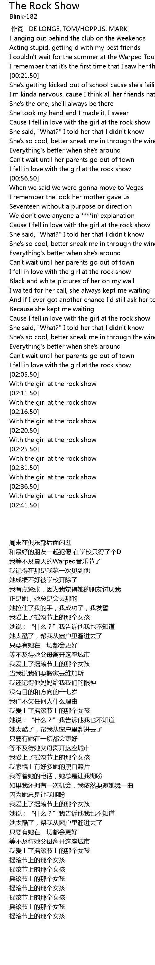 | [01:50.50] | Cause I fell in love with the girl at the rock show |