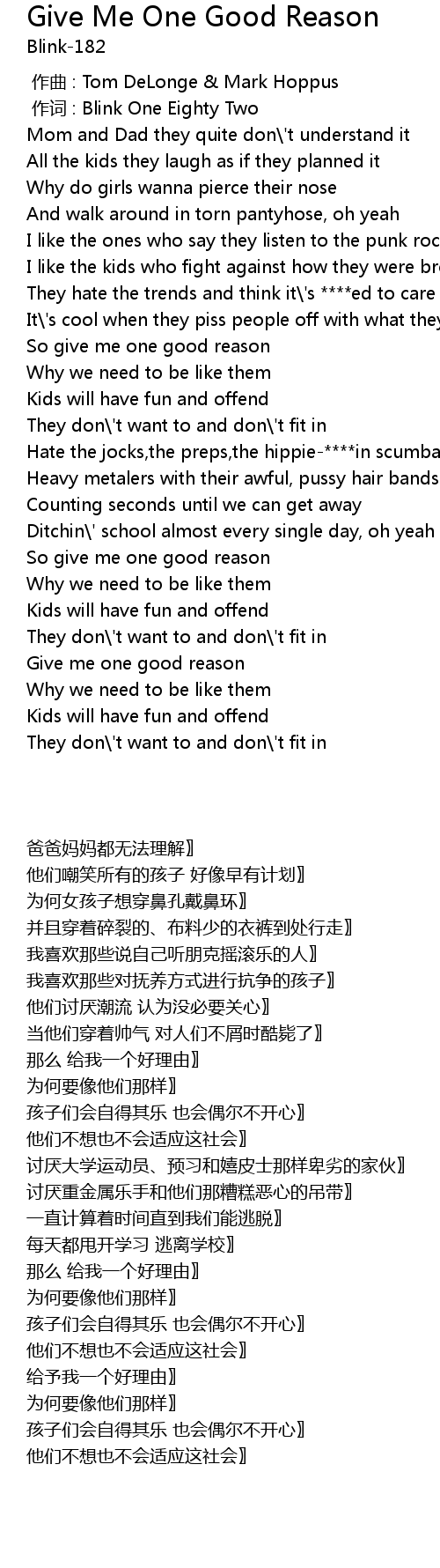 | [00:01.00] | 作词 : Blink One Eighty Two |