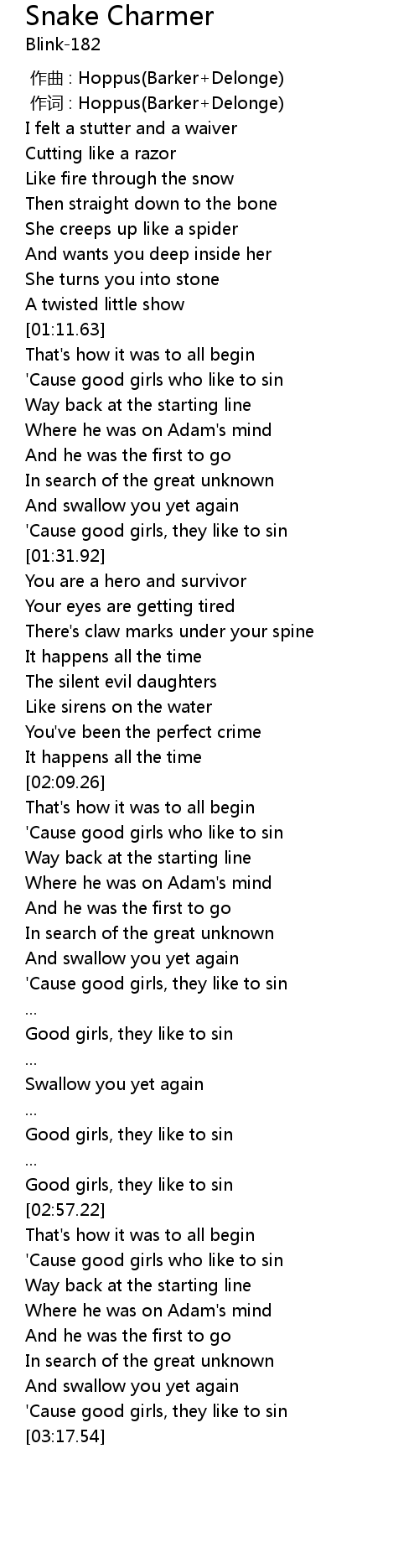 | [00:01.00] | 作词 : Hoppus(Barker+Delonge) |