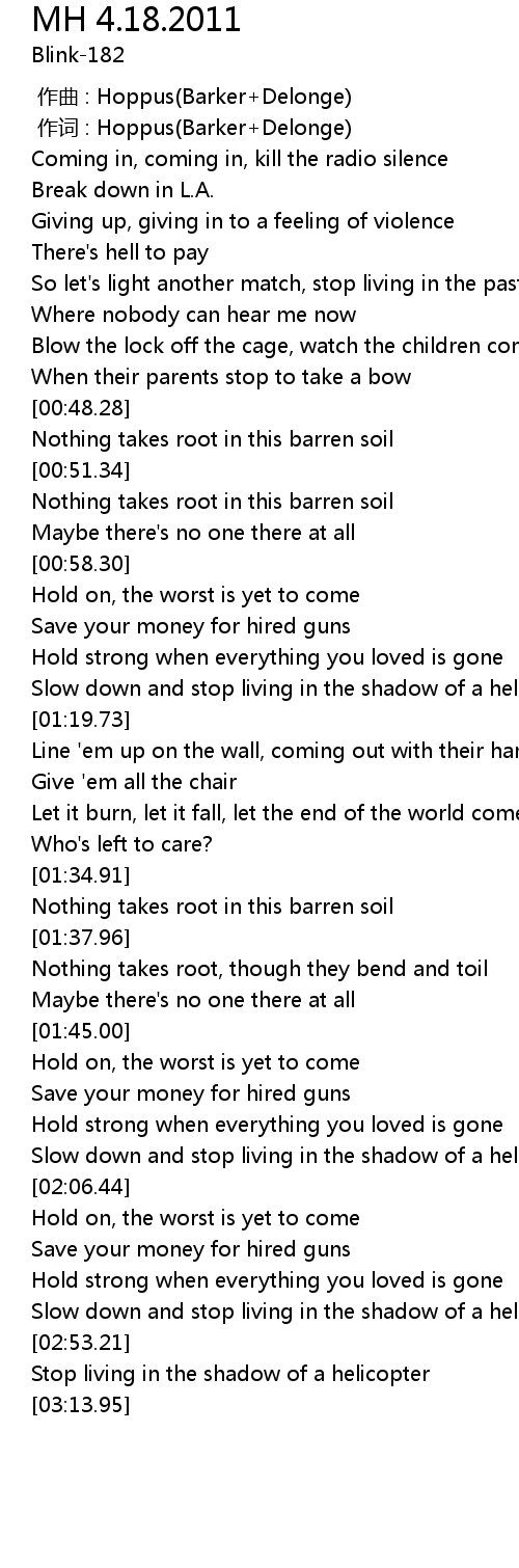 | [00:01.00] | 作词 : Hoppus(Barker+Delonge) |
