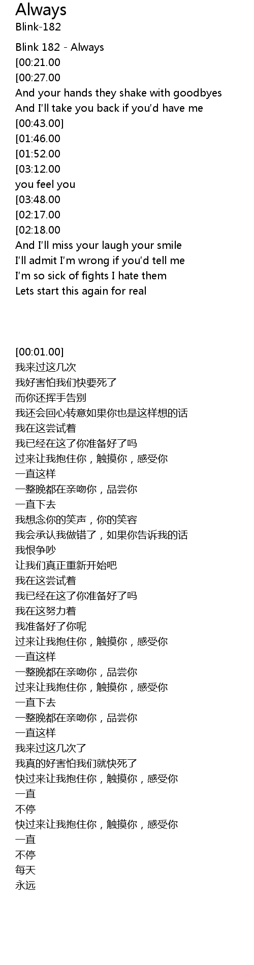 | [00:01.00] | Blink 182 Always |