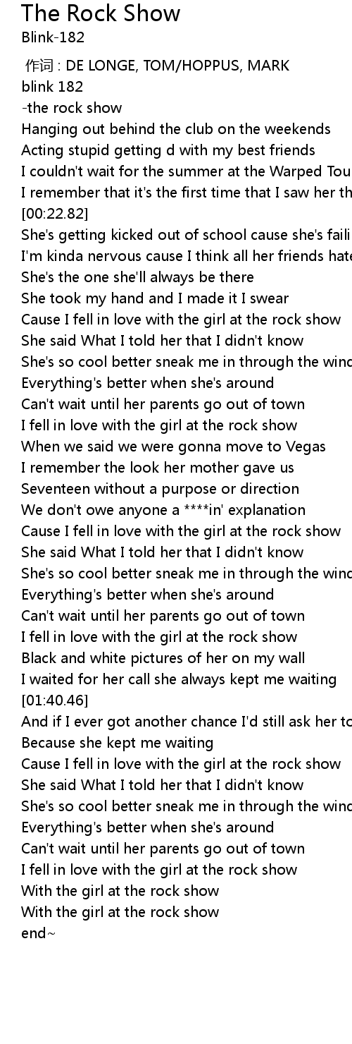 | [01:16.00] | Cause I fell in love with the girl at the rock show |