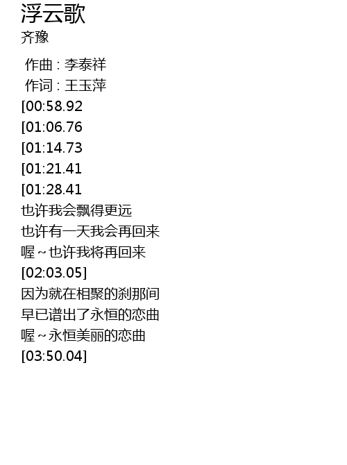 | [03:29.87] | zǎo yǐ pǔ chū le yǒng héng de liàn qū |