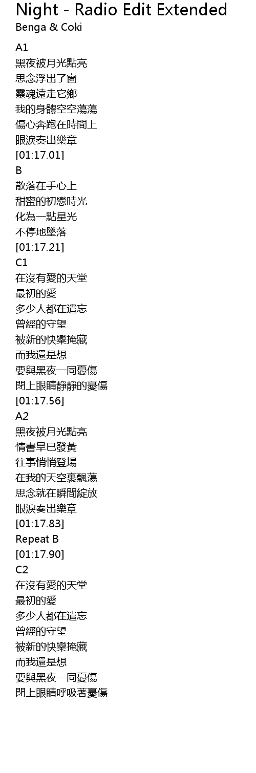 | [01:18.17] | 要與黑夜一同憂傷 |